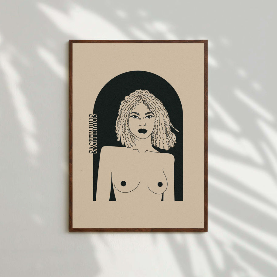 Minimalist Zodiac wall art featuring an elegant nude line drawing and neutral tones, perfect for astrology lovers, birthday gifts, or modern bohemian home decor.