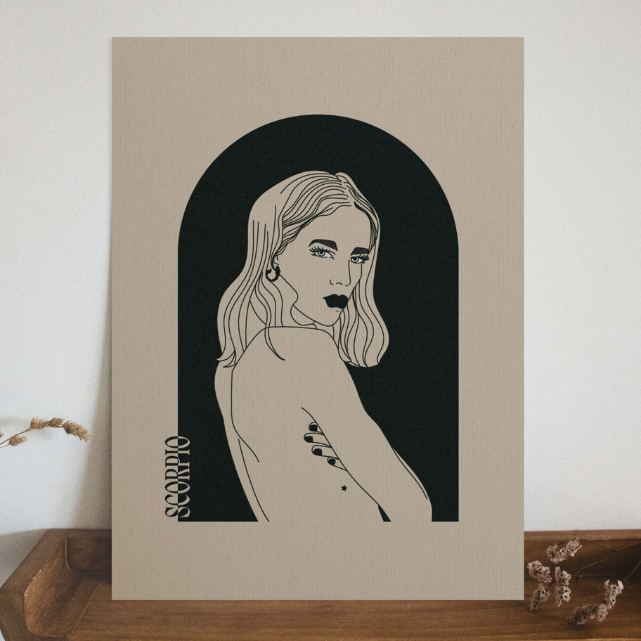 Scorpio Zodiac Illustration Digital Art, Star Sign, Printable Art A3